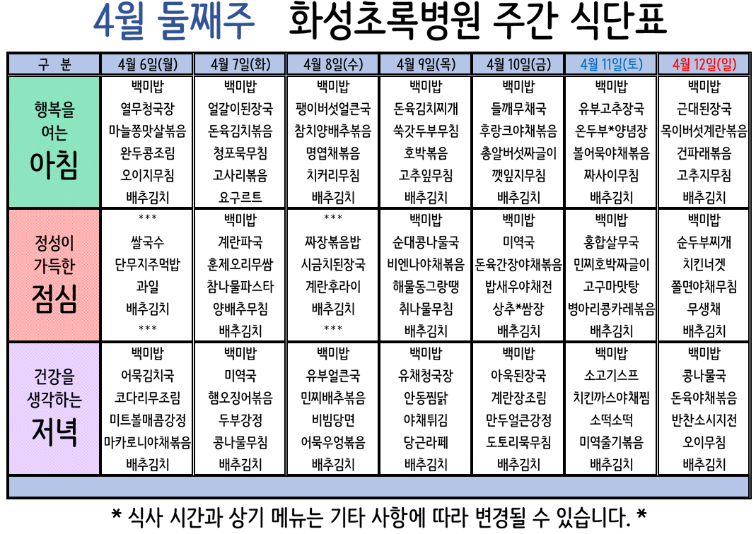 4월 둘째주 식단안내